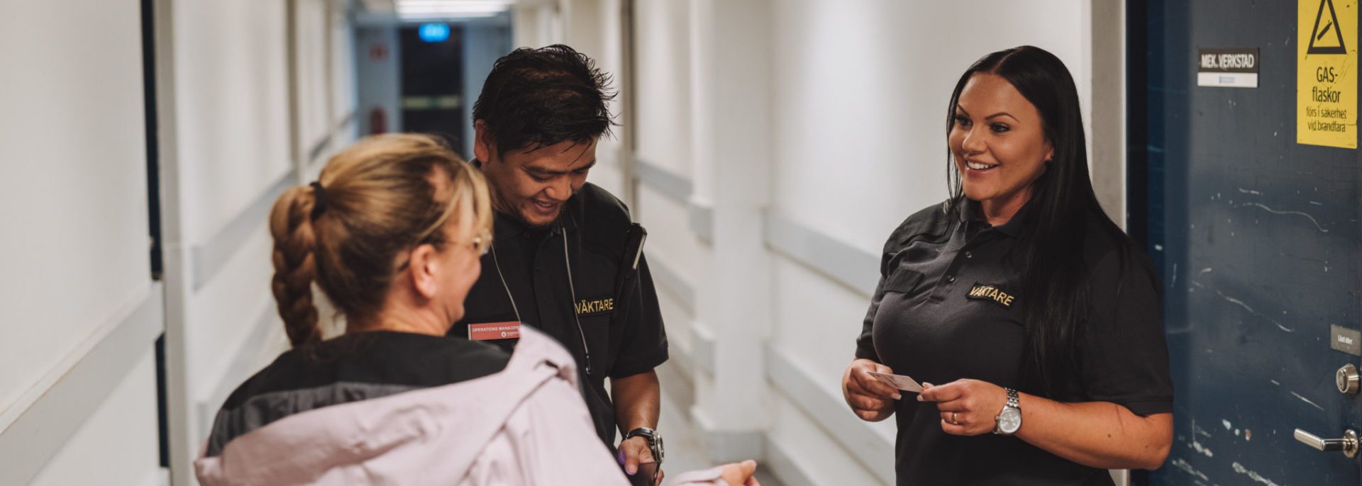 Våra Duty Managers och väktare blir i de flesta fall kundens ansikte utåt, varpå vi alltid ställer höga krav på professionalism och servicenivå på de vi anställer. Vi är väl medvetna om hur viktigt det är med rätt gruppledare och bevakningspersonal, och utser nyckelpersonerna i nära samråd med er. Kunskap om dig som kund, avtal, uppdrag samt målsättning skall var välkänt hos samtliga funktioner. I vår ambition att ständigt förbättras tar vi vara på medarbetarkraften där alla har ansvar att kontinuerligt inkomma med förbättringsförslag kring sitt uppdrag. Vi vill att det ska märkas skillnad när du anlitar oss.